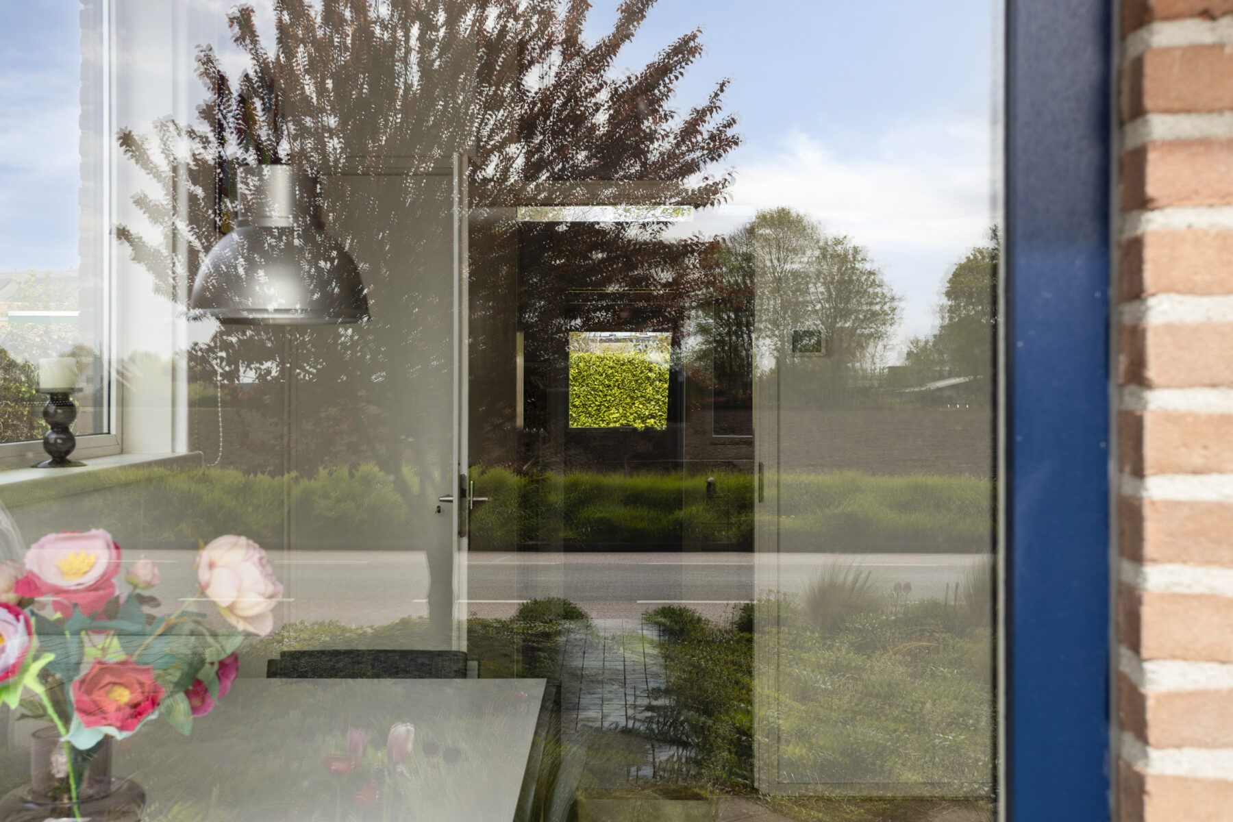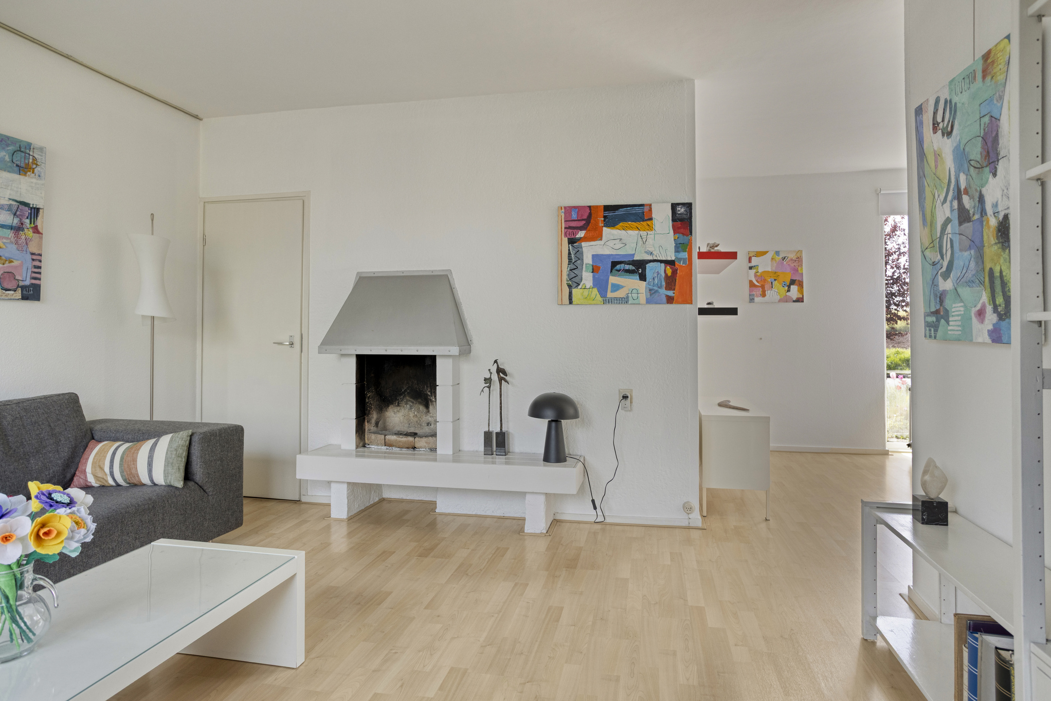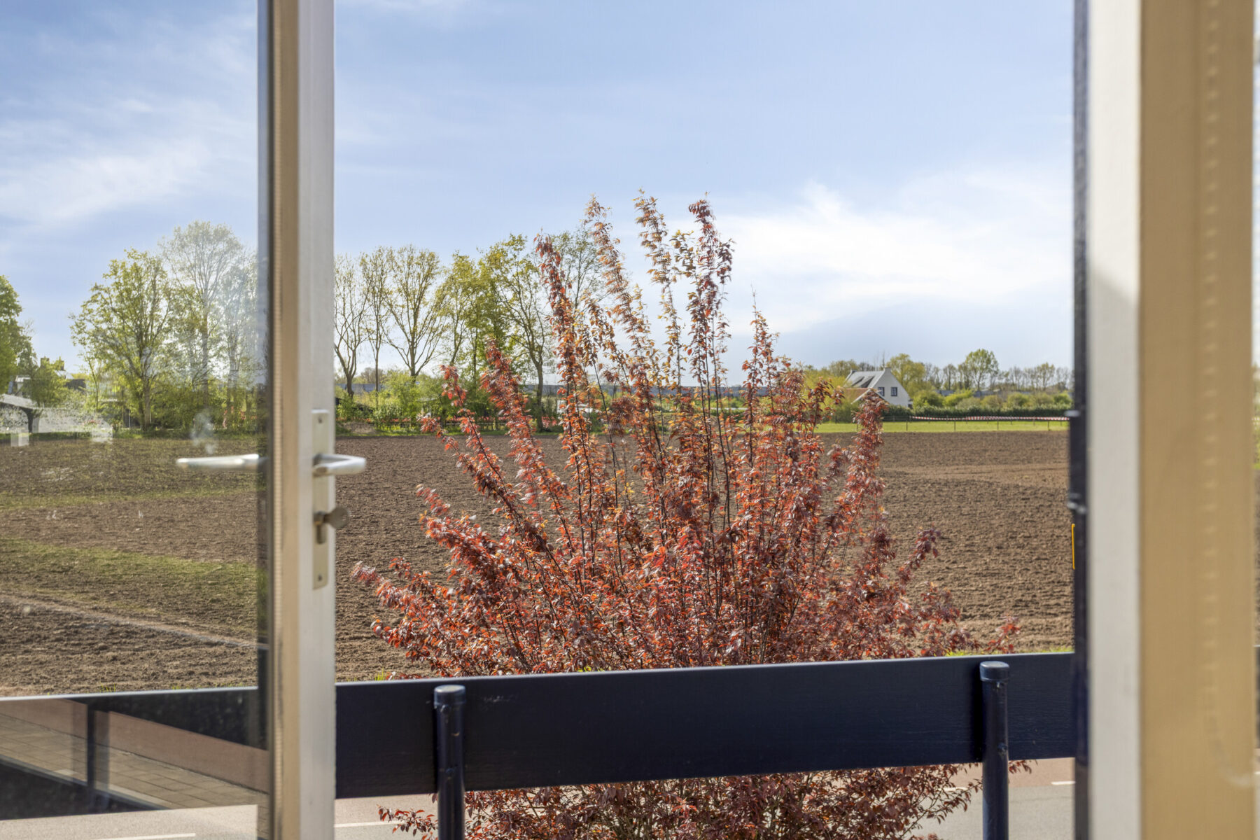 De woonkamer is een heerlijke, lichte ruimte waar je moeiteloos een ruime eettafel bij het raam plaatst. Hier geniet je dagelijks van een prachtig, vrij uitzicht over het omliggende weiland. Het zitgedeelte is extra karaktervol door de aanwezigheid van een open haard en het zicht op de tuin. Naast de open haard zit nog extra bergruimte.