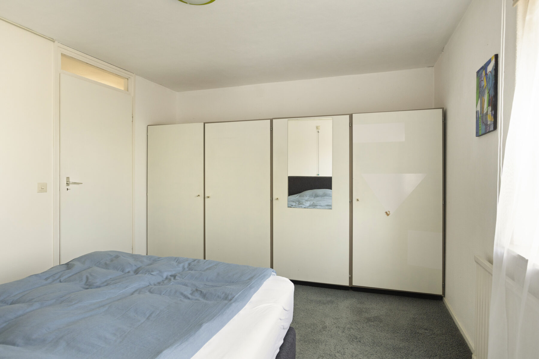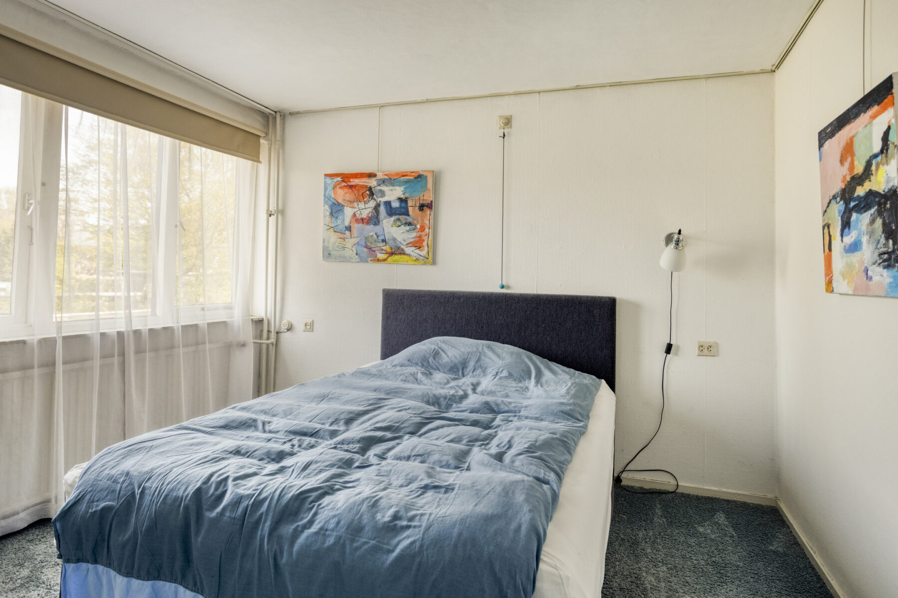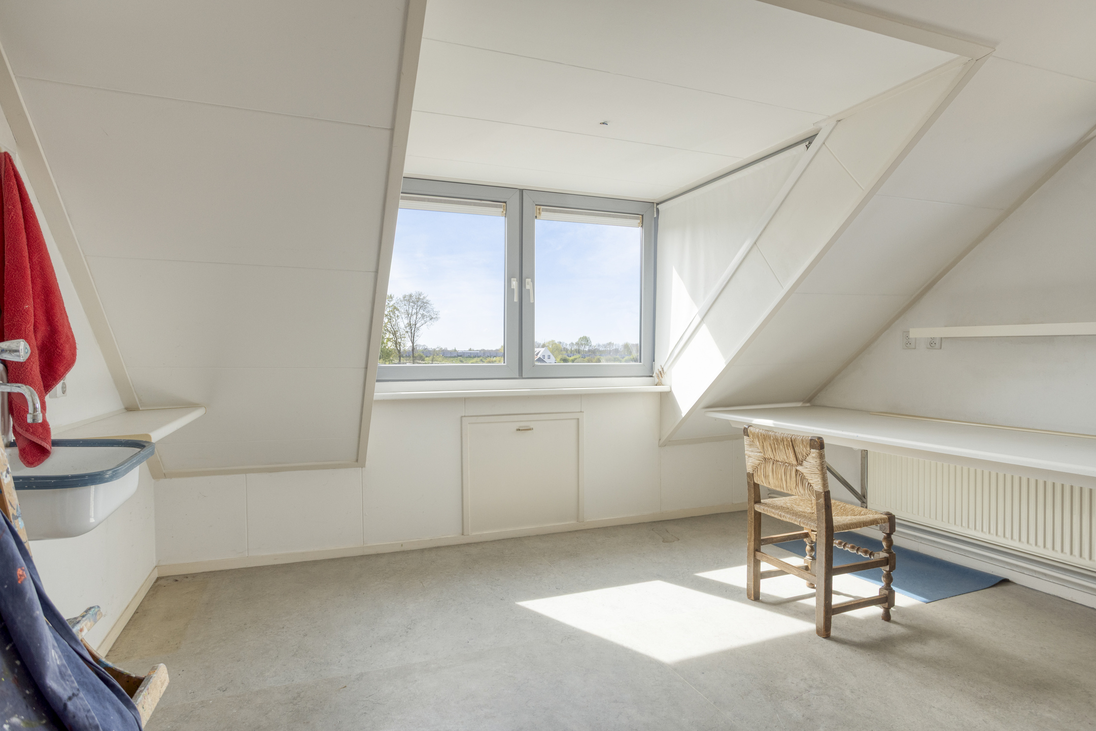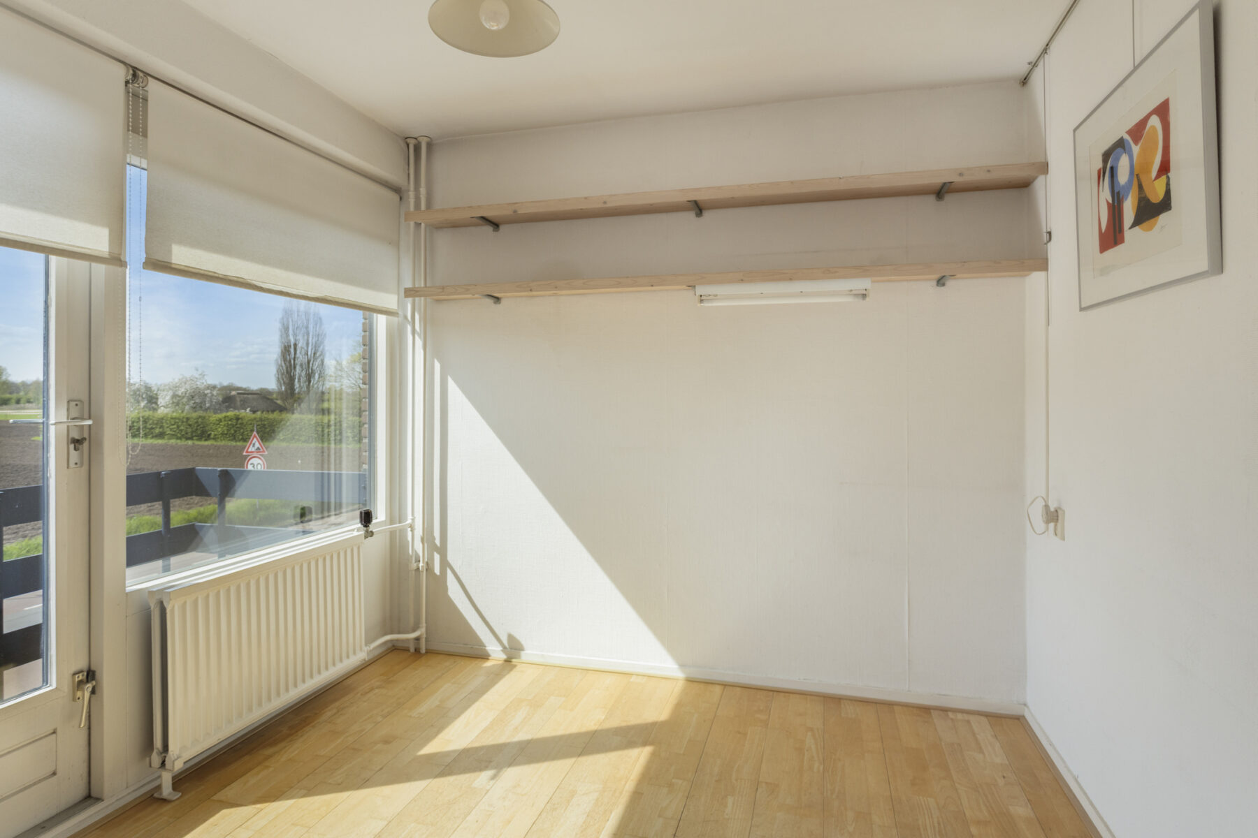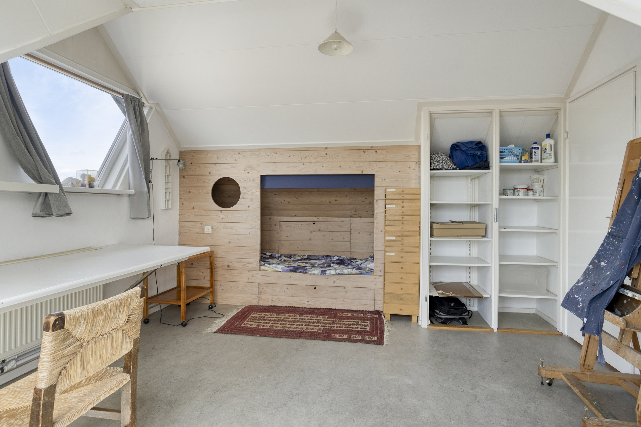 De tweede verdieping bereik je via een vaste trap een lichte en uitnodigende overloop. Direct bij binnenkomst valt het daglicht je tegemoet dankzij het dakraam. Aansluitend bevindt zich de ruime slaapkamer, die dankzij het grote raam heerlijk licht is. De kamer biedt voldoende ruimte voor een comfortabel slaapgedeelte en is voorzien van een sfeervolle bedstede. Daarnaast beschikt de kamer over een praktische wastafel, wat extra gemak en functionaliteit biedt.