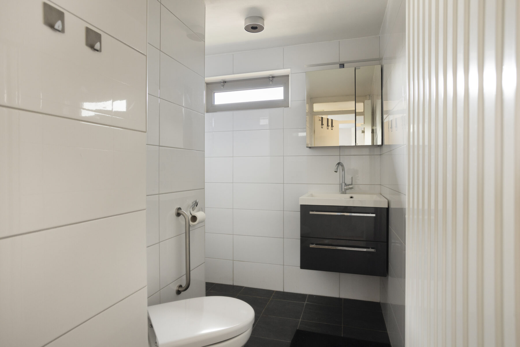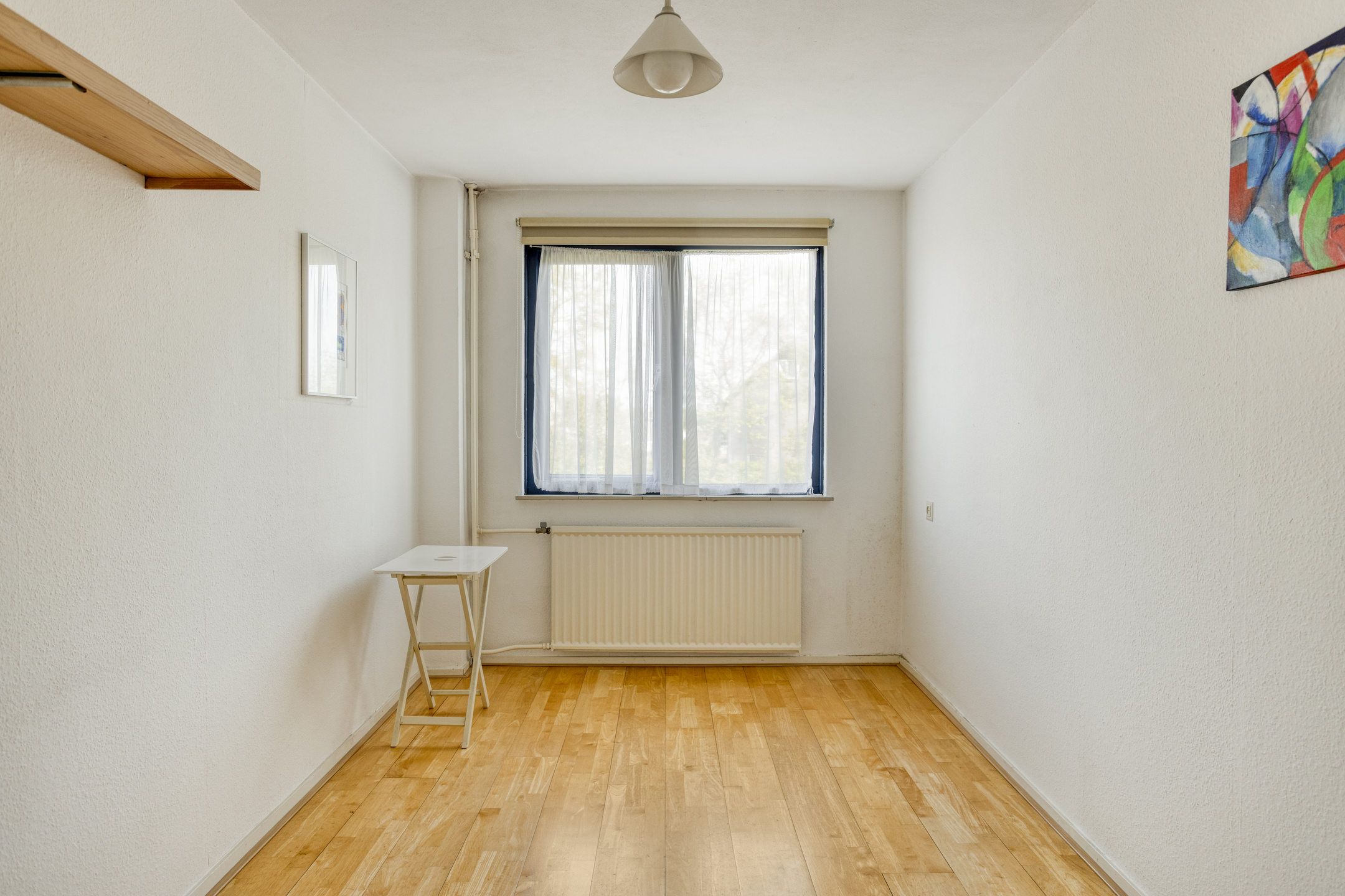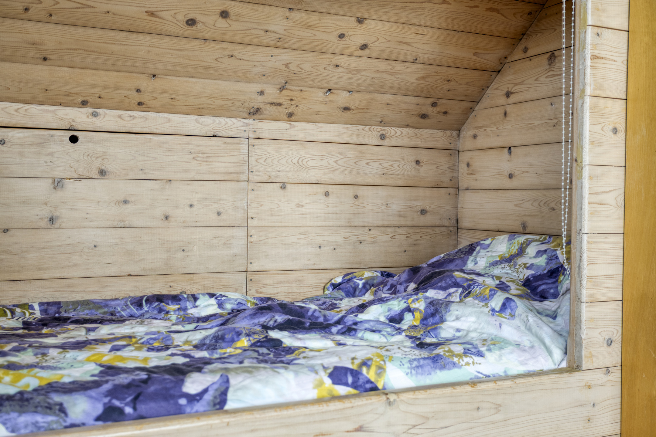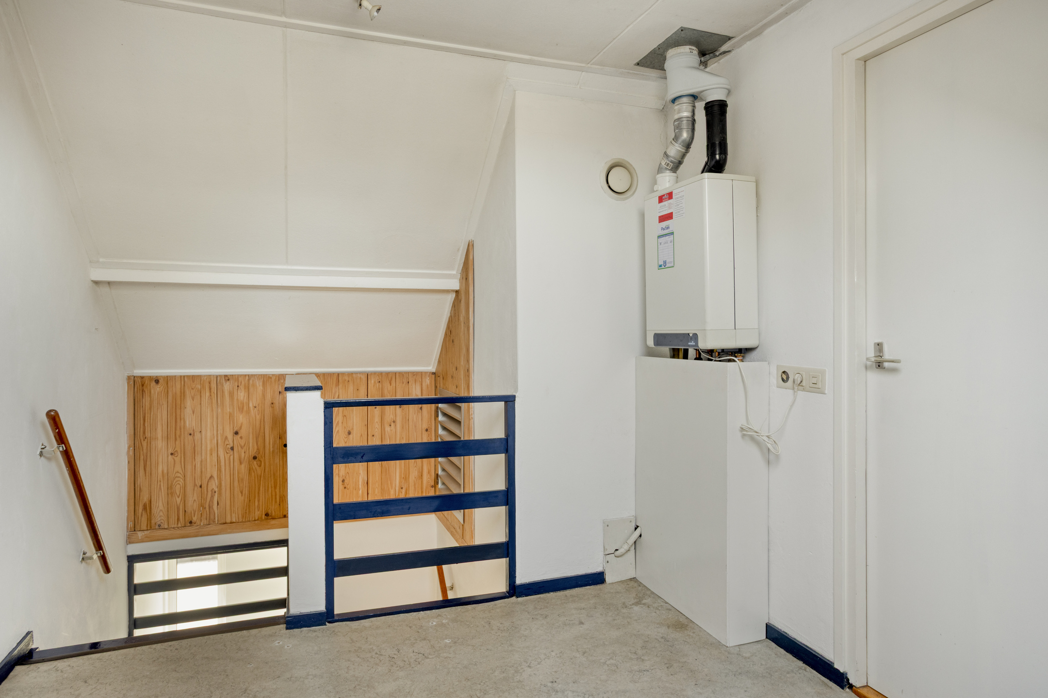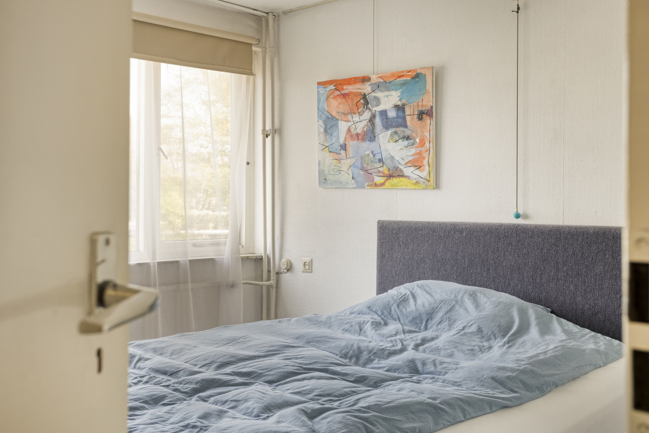 De tweede verdieping bereik je via een vaste trap een lichte en uitnodigende overloop. Direct bij binnenkomst valt het daglicht je tegemoet dankzij het dakraam. Aansluitend bevindt zich de ruime slaapkamer, die dankzij het grote raam heerlijk licht is. De kamer biedt voldoende ruimte voor een comfortabel slaapgedeelte en is voorzien van een sfeervolle bedstede. Daarnaast beschikt de kamer over een praktische wastafel, wat extra gemak en functionaliteit biedt.