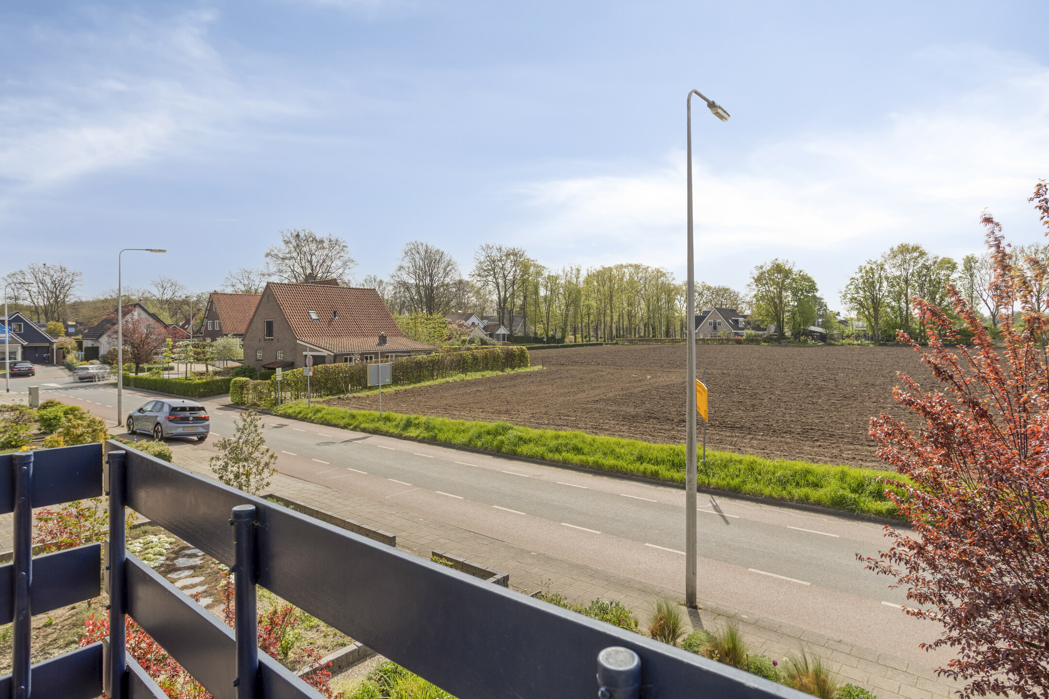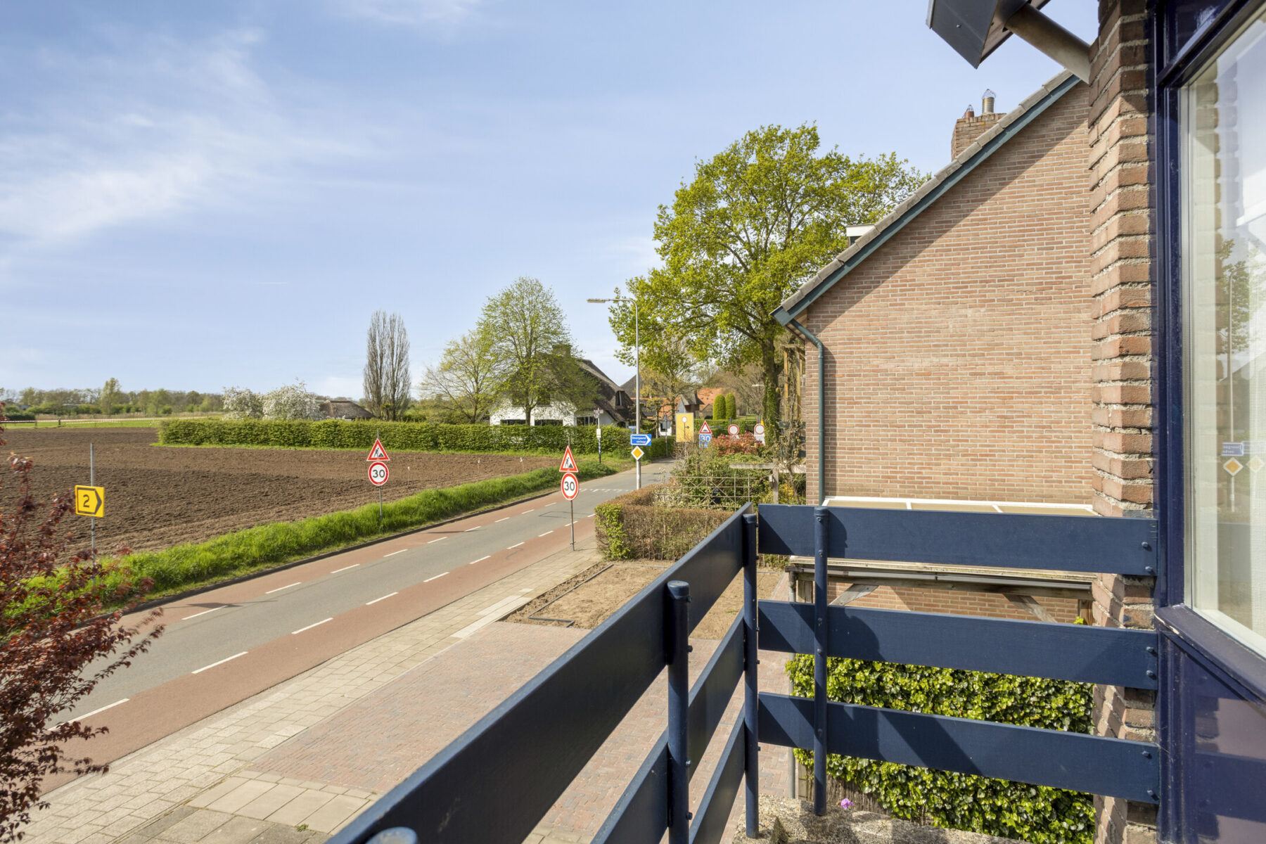 Overloop met toegang tot drie slaapkamers en één badkamer. De badkamer is uitgerust met een toilet, een wastafelmeubel en een inloopdouche. In de slaapkamer aan de voorkant van de woning, met uitzicht op het weiland bevindt zich ook een balkon.