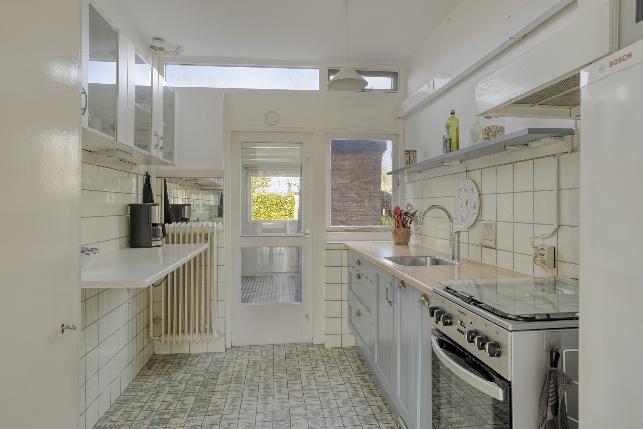 Loop je verder, dan kom je via een volgende deur in de keuken. Aansluitend bevindt zich een ruime bijkeuken, ideaal voor extra opslag, washok en als functionele achteringang van de woning.