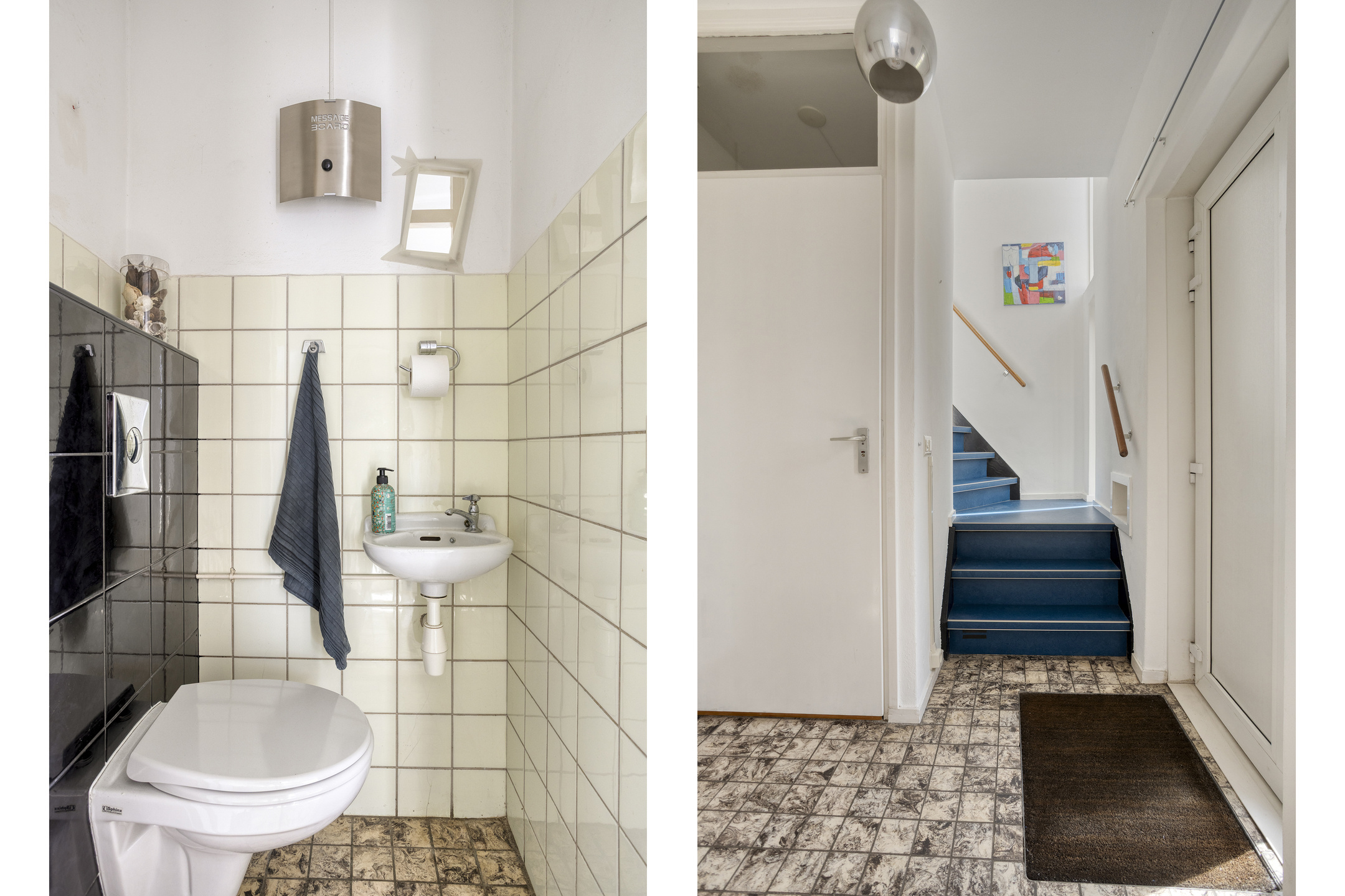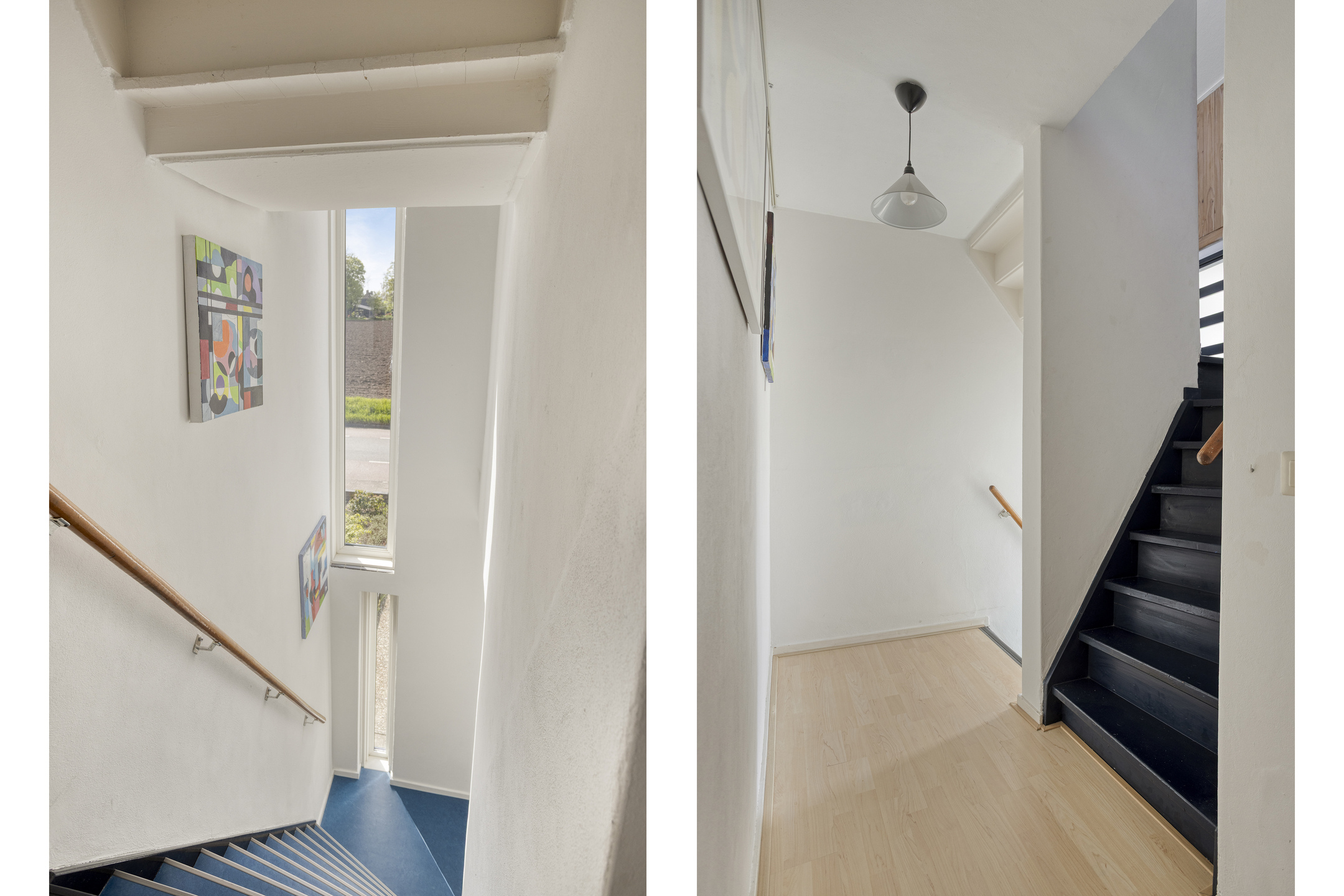 Begane grond: Via de voordeur betreed je de woning en kom je binnen in een nette hal, waar zich tevens het toilet bevindt. In deze hal valt direct de ruime trapopgang naar de eerste verdieping op, die een gevoel van openheid en licht geeft. Aan de andere zijde van de hal vind je de deur naar de woonkamer.