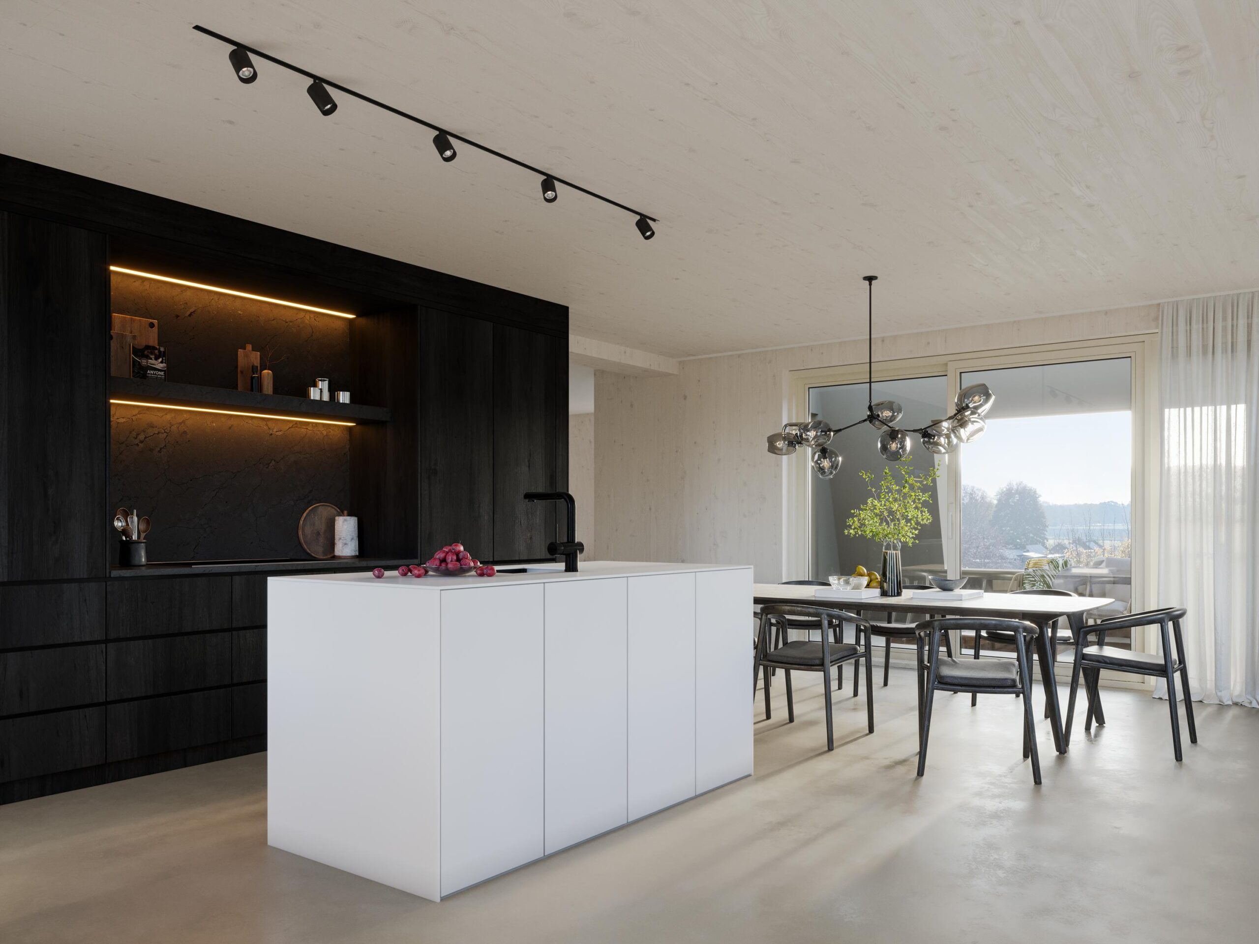– CLT wanden en plafonds worden in whitewash fris wit opgeleverd en behoeven geen verdere afwerking (kijk voor een video over CLT op onze site!)