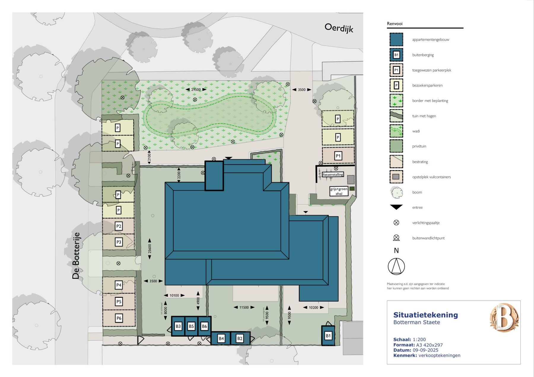 Het dakterras is heerlijk op het zuidwesten gelegen. Het gehele erf wordt aangelegd. Zo ziet u; u komt hier in een gespreid bedje, waarbij alles eigenlijk voor u geregeld is, zelfs de buitenverlichting bij de woningen zijn in stijl en uniform aangebracht. Op het terrein is het tevens stijlvol, inclusief en uniform aangebracht! U heeft tevens uw eigen privé berging voor fietsen, aan de achterzijde van het gebouw. Voor gasten is er een prachtige fietsenstalling ontworpen, in eenheid met het gebouw in Braziliaans metselwerk ontworpen. Ook voor de containers is een plaats bedacht en meegenomen in het tuinontwerp, zodat dit uit het zicht onttrokken wordt.