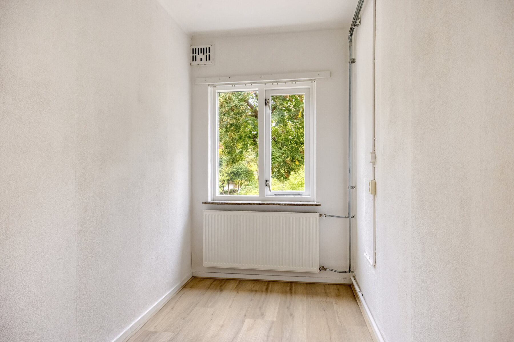 De ruime slaapkamer is gelegen aan de achterzijde en grenst direct aan de badkamer. De badkamer is geheel betegeld en hier treft u een comfortabele inloop douche aan met een wastafel. de moderne cv zorgt voor een krachtige warme douche.
