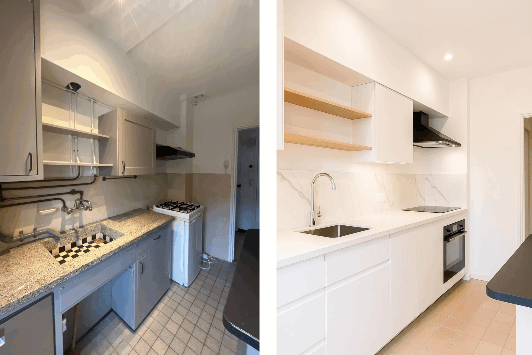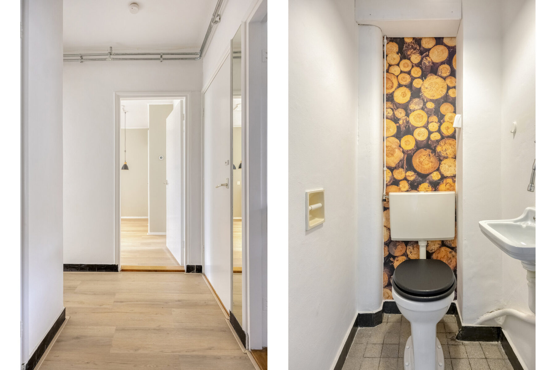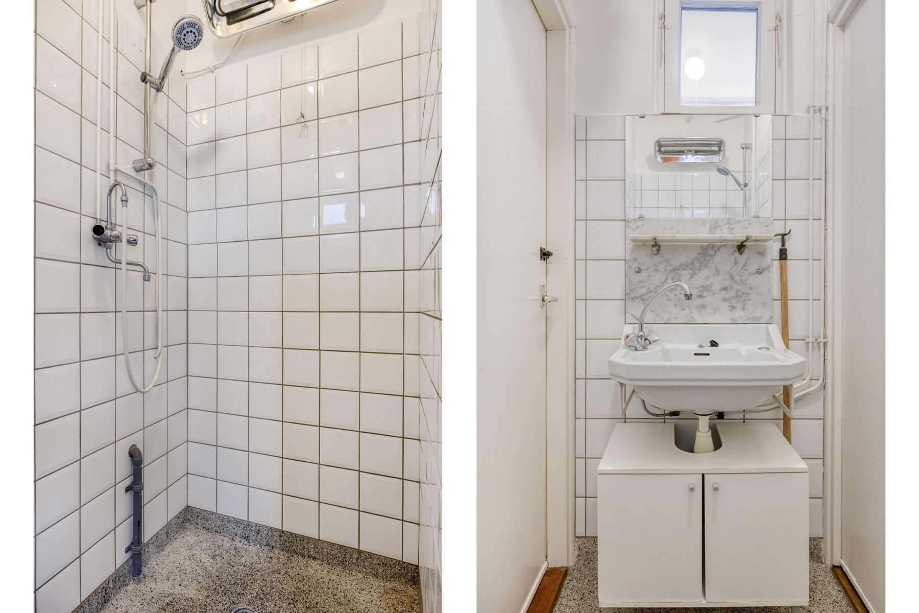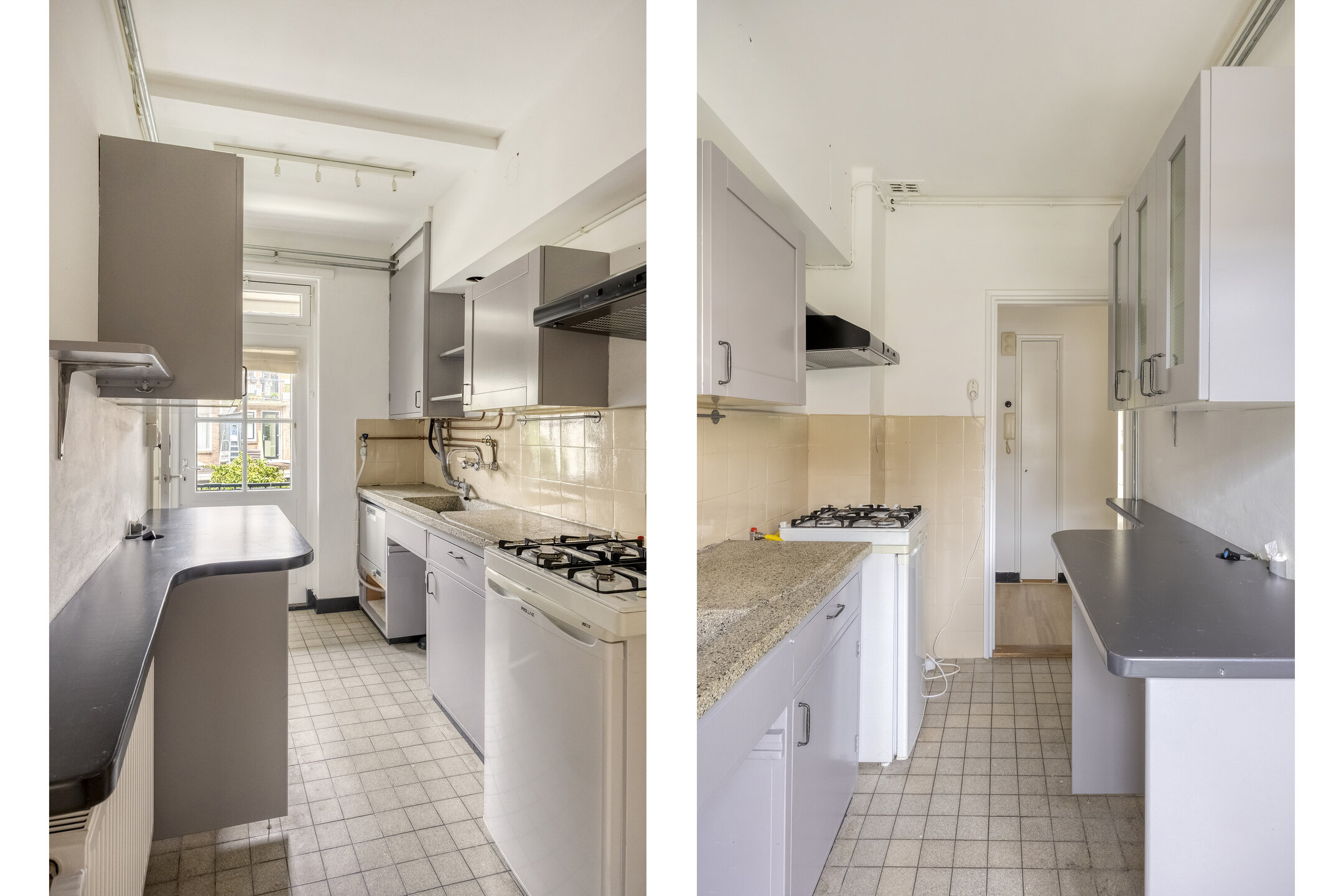 Ruim toilet met fontein, bergruimte, keuken met een fraaie en authentieke granito werkblad en gootsteen. veel bergruimte en opstelplaats voor de wasmachine en cv (2017). Vanuit de keuken heeft u toegang tot het op het westen gelegen balkon met bergkast.
